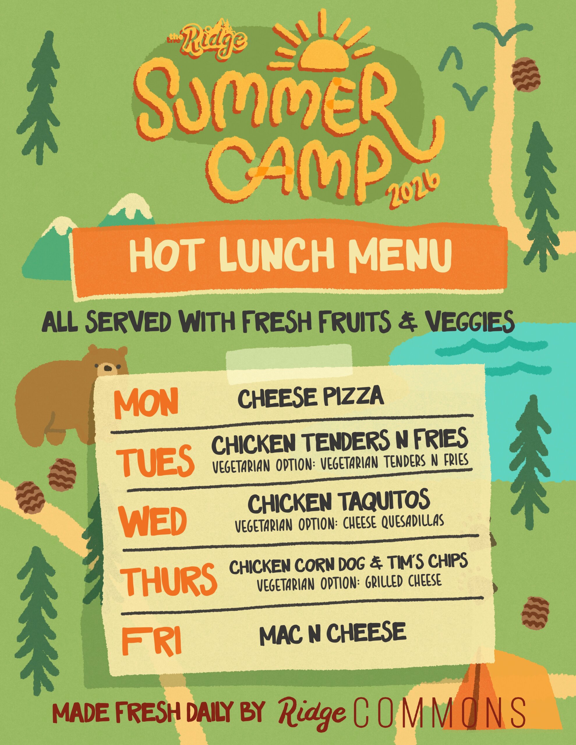 Summer Camp Hot Lunch Menu